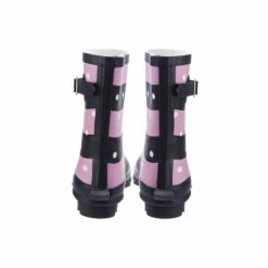 – Womens wellies- Mid-height- Waterproof- Contoured to the mid-calf- Rubber rand with functional heel kick for easy remove- Side buckle and strap feature- Removable insole- Low cleated heel- Pull on