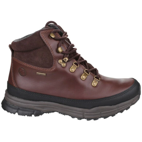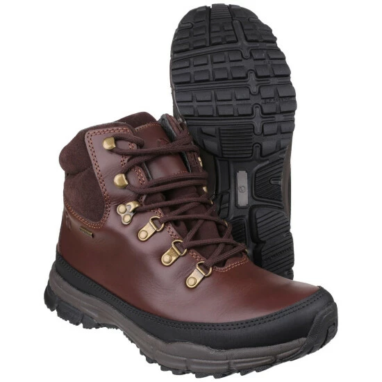 – Full grain leather waterproof hiking boots- Memory foam footbed- Dual density and oil resistant outsole- Rugged traction rubber sole- Embossed full grain leather- Cotswold embossed logo on tongue- Waterproof membrane- Full grain leather/Rubber