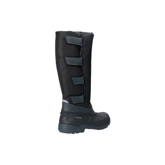 – Durable lightweight and breathable textile upper with a microfiber faux fleece sheering lining.- Waterproof molded thermoplastic rubber galosh.- Five flexible wide calf fit adjustable touch fasten straps and wide full-length windproof gusset.- Synthetic inside leg protector.- Hardwearing non slip cleated rubber sole unit..- Gender: Women