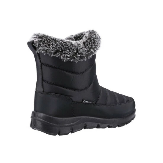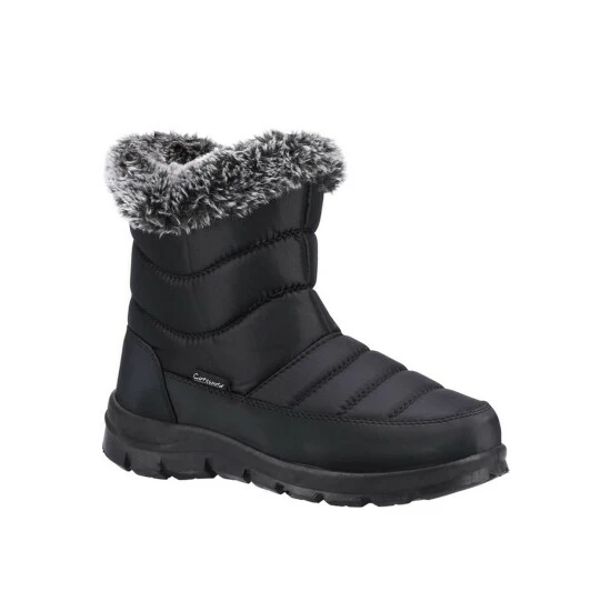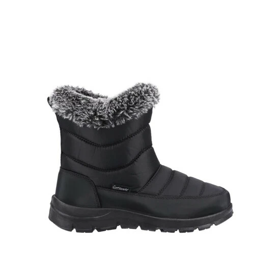 Fleece lined hybrid snow boot with waterproof rubber galosh and side zip for easy use.