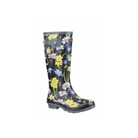 Cotswold Womens/Ladies Windsor Print Wellingtons Boots Black Floral